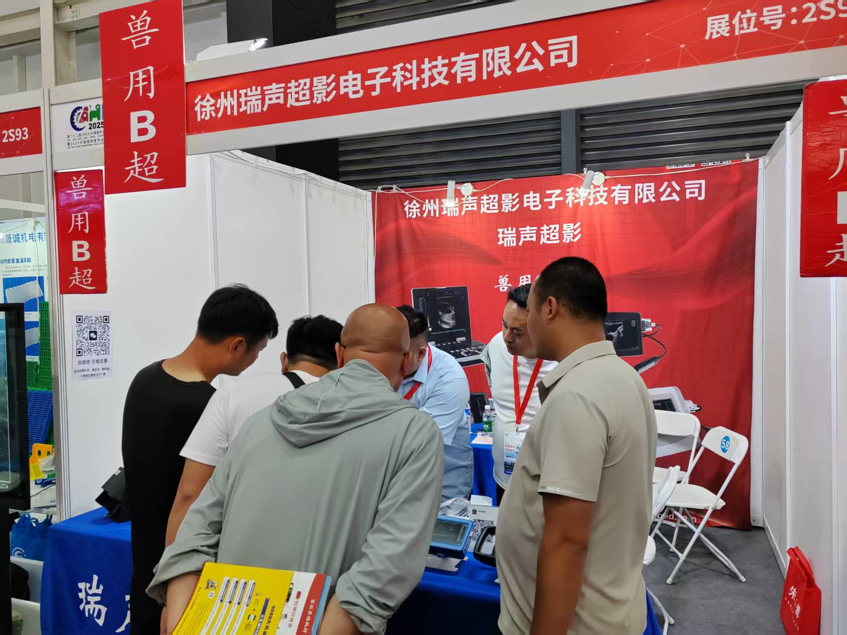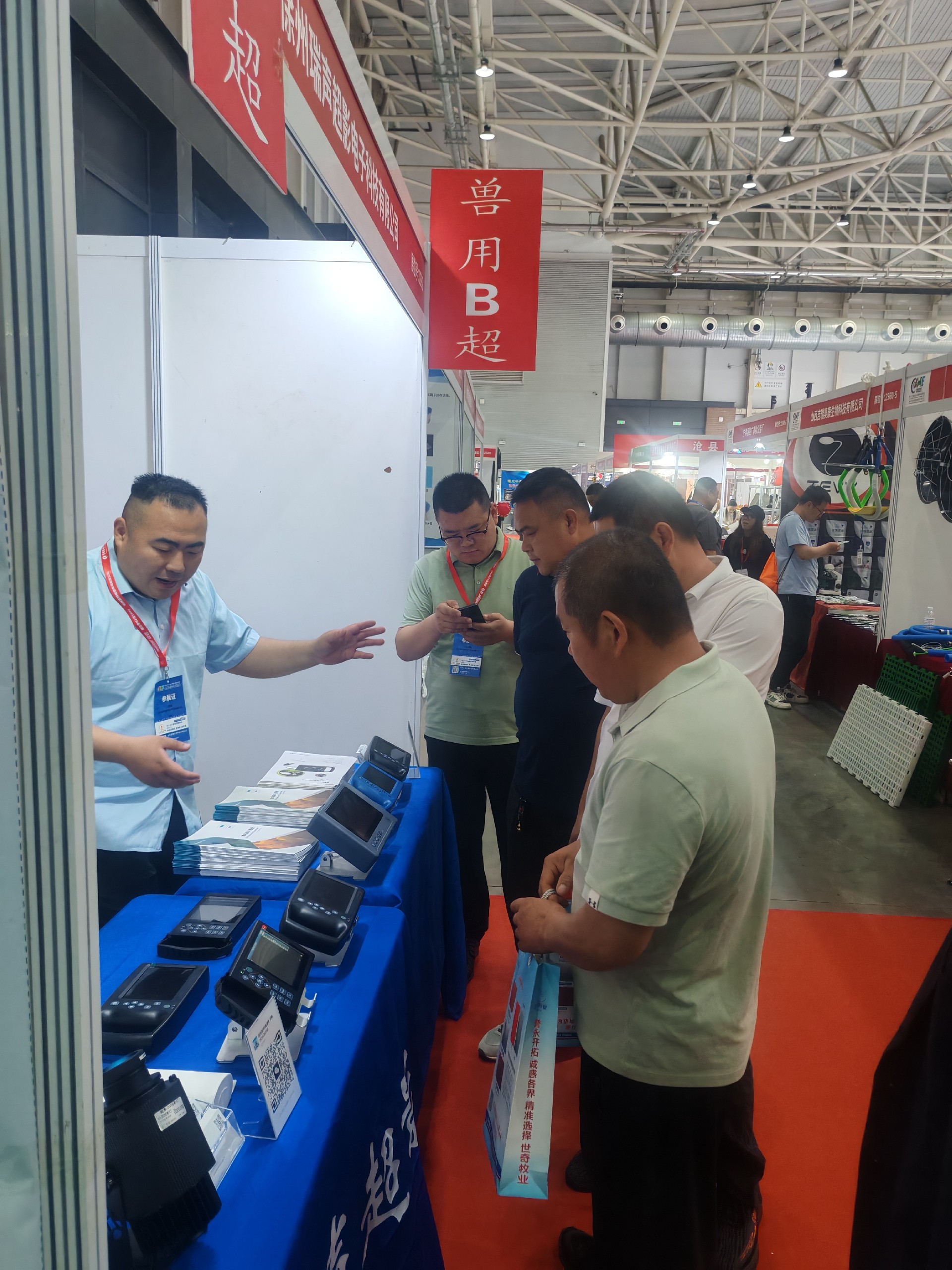 现场参观人员络绎不绝,新老客户的热情招待,兽用B超的详细现场讲解。