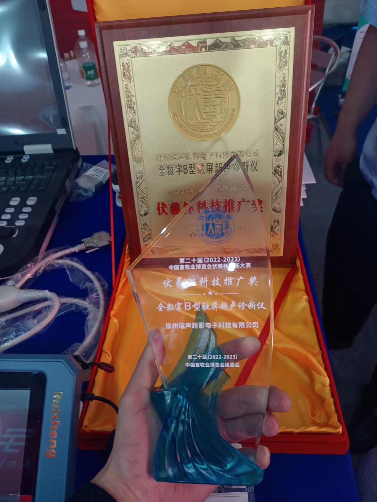 在第二十届中国畜牧业博览会如火如荼的展会期间,瑞声超影再次获得了本届“伏羲杯”创新大赛科技推广奖的奖杯和证书,这是瑞声超影连续两届获得中国畜牧业博览会的奖项,此次奖项评比是通过组委会以及中国畜牧业协会多方专家评审,瑞声超影严格按照组委会指标上传材料,瑞声超影是唯一获奖的B超厂家,这不仅是专家们对瑞声B超的认可,也是瑞声所有员工努力的结果。